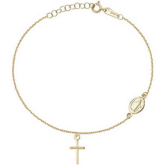 Bracciale Da Donna Di Amen. Bracciale Realizzato In Oro Giallo 9 Kt Con Croce. Taglia: Unica. Lunghezza: 16+2+3Cm.
