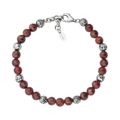Bracciale in AG925 pietra lavica e occhio di tigre rosso - Brunito - Lunghezza 20+2cm - pietra Ø 0,6 cm