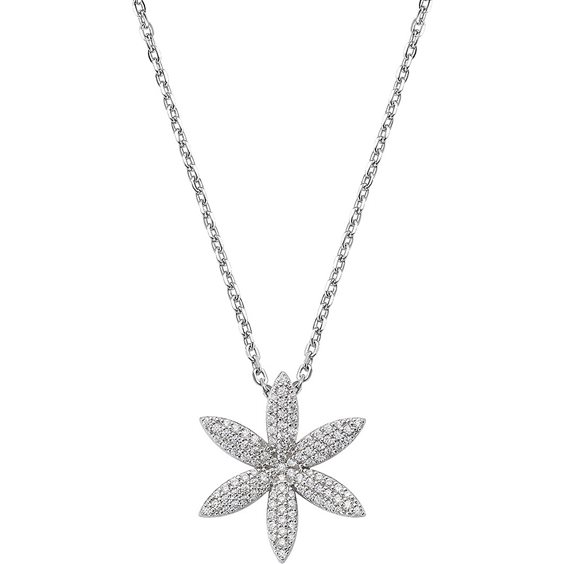 Collana in argento di amen zirconi bianchi - Rodio - (Lunghezza 40 + 5 cm) Collana Fiore Della Vita Zirconi Bianchi Collezione Fiore della Vita