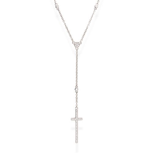 Collana Croce e Punti Luce - Collana in Argento 925 e zirconi bianchi Rodio - Lungh. 76cm - h. Croce 3cm
