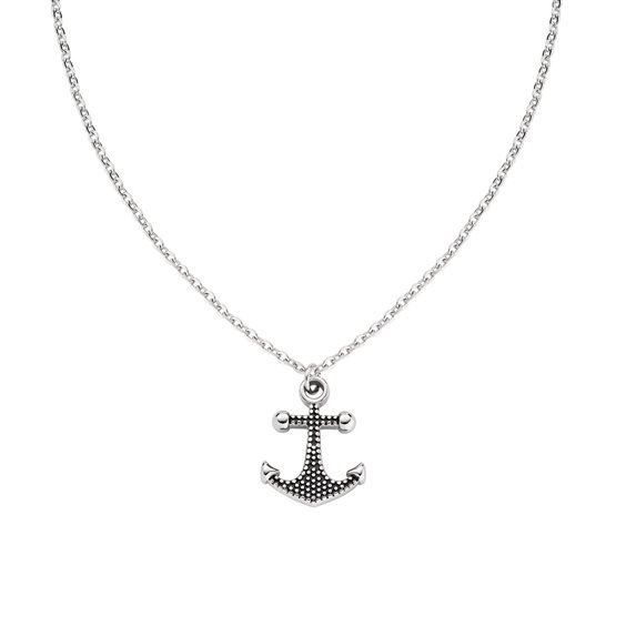 Collana Ancora in Acciaio e Smalto - Collana in acciaio 316 pendente con smalti, catena forzatina - Acciaio Anticato - Lunghezza 50 + 5 cm