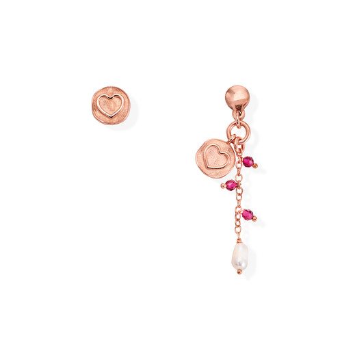 Orecchini in Argento 925 cristalli rossi e perla di fiume - Rosè - Lunghezza 3,5cm.