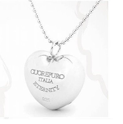 Chiama angeli in argento con pendente a forma di cuore. lunghezza cm 100