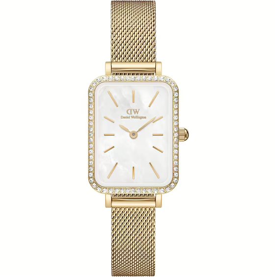 Quadro è già bello di per sé, non c'è dubbio, ma possiamo sottoporre alla tua attenzione questa versione completamente decorata per quando ti senti un po' speciale Colore Gold Materiale Acciaio inox con doppia placcatura (316L) Colore quadrante MOP White Meccanismo Japanese Quartz Movement Materiale del cinturino Acciaio inox (316L) Colore del cinturino Gold Tipo di cinturino Pressed Mesh Larghezza del cinturino 10 mm Cinturini intercambiabili Sì Resistente all'acqua fino a 3ATM (Resistente alla pioggia)