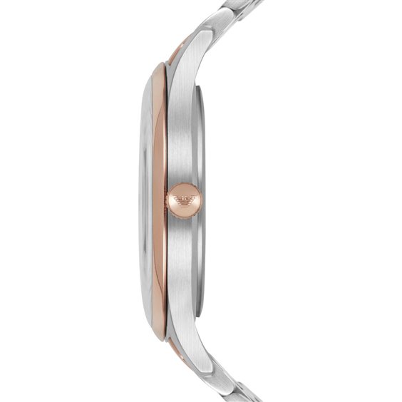 Prodotto: orologio solo tempo donna Emporio Armani AR11044 Orologio Solo Tempo A Tre Lancette Da Uomo Di Armani. Orologio Con Cassa Della Dimensione Di 43 Mm, Realizzata In Acciaio Inossidabile, Con Finitura Lucida E Satinata, Di Colore Silver / Acciaio E Di Forma Rotonda. Lo Spessore Di Cassa È Di 12 Mm. Questo Modello Ha Vetro Trasparente, Quadrante Di Colore Silver. La Ghiera È In Acciaio Inossidabile, Con Finitura Lucida E Di Colore Rose Gold. La Distanza Delle Anse È Di 22 Mm. Orologio Con Datario. Il Cinturino È In Acciaio Inossidabile, Con Finitura Lucida E Satinata E Di Colore Silver, Rose Gold. Questo Modello Ha Una Resistenza All'Acqua Di 5 Atm E Movimento Al Quarzo. La Referenza È Ar11044