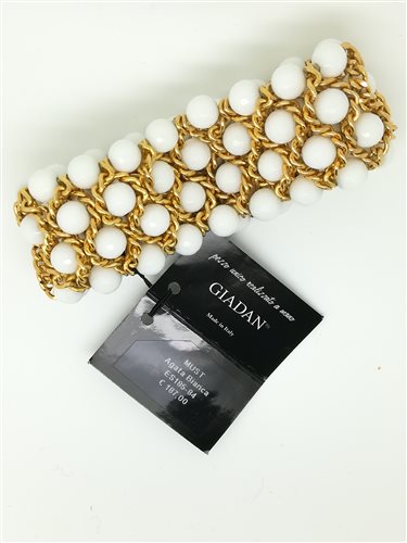 BRACCIALE DONNA IN ARGENTO DORATO E AGATA BIANCA