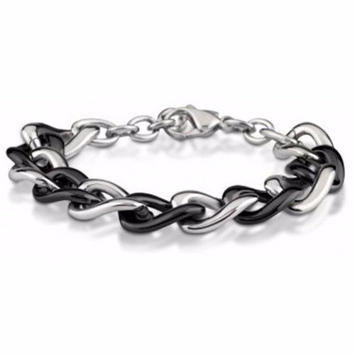 Bracciale in acciaio e ceramica nera, con catenella finale.