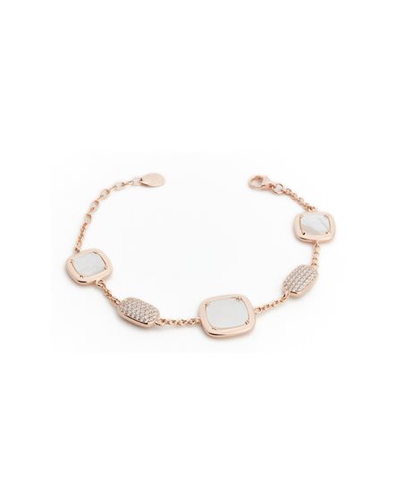 Bracciale in argento dorato rosa 925 con elementi in madreperla naturale alternati ad altri con cubic zirconia incassati a pavè