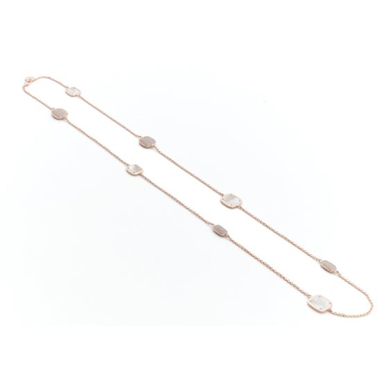 Collana in argento dorato rosa 925 lunga 90 con madreperla naturale e cubic zirconia