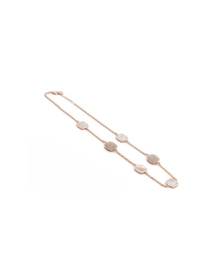 Collana in argento dorato rosa 925 lunga 45 con madreperla naturale e cubic zirconia
