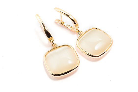 Orecchini in Argento 925, placcato in Oro con quarzi idrotermali ghiaccio. Collezione Laguna
