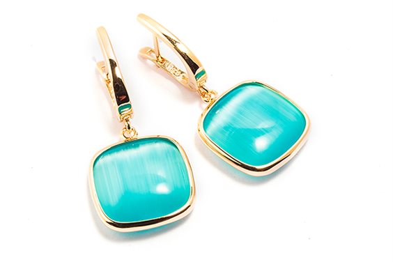Orecchini in Argento 925, placcato in Oro con quarzi idrotermali blu mare.