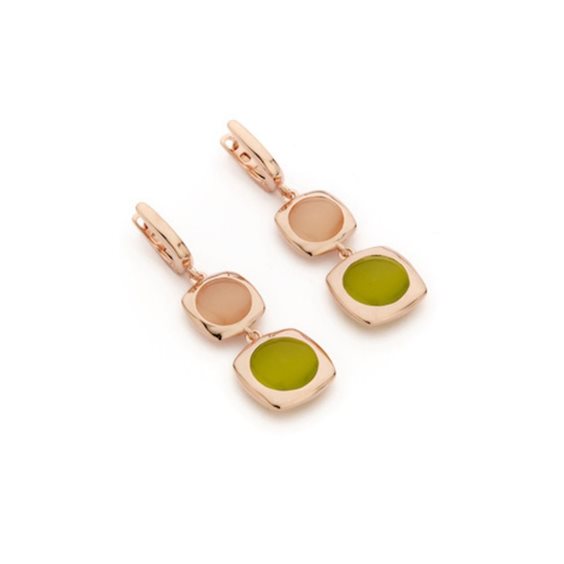 Bracciale in argento rosè con quarzo idrotermale di vari colori. Chiusura con moschettone e catenella per l'allungo. Oblò mm 16x16 e mm 13x13.