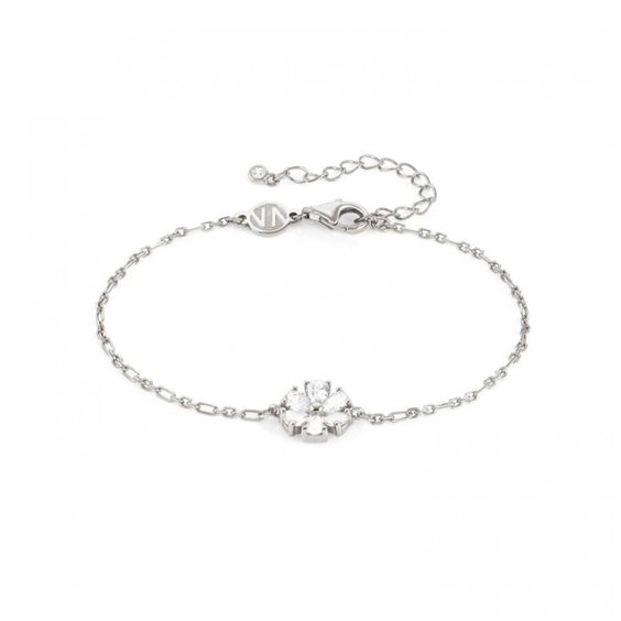 Bracciale da donna Nomination 148037/030 in Argento 925% in rodio bianco. Bracciale maglia a catena con Fiore e Cubic Zirconia bianchi. Pendenti misura 10x8 mm. Collezione Bracciali Nomination Sweetrock. Lunghezza 20 cm regolabile a 16 cm. Chiusura con moschettone.