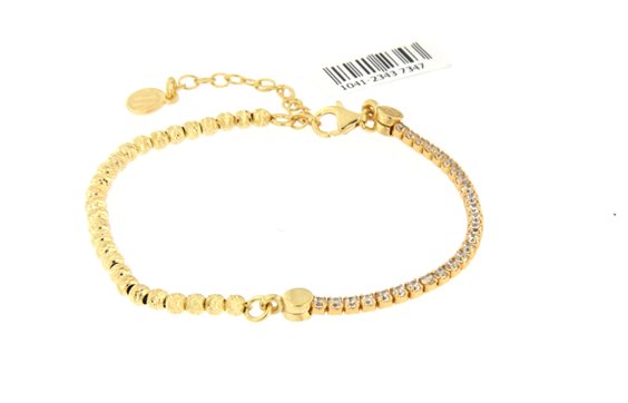 Bracciale in Argento 925/°°° con sfere diamantate e zirconi; misura personalizzabile da 16 a 20 cm