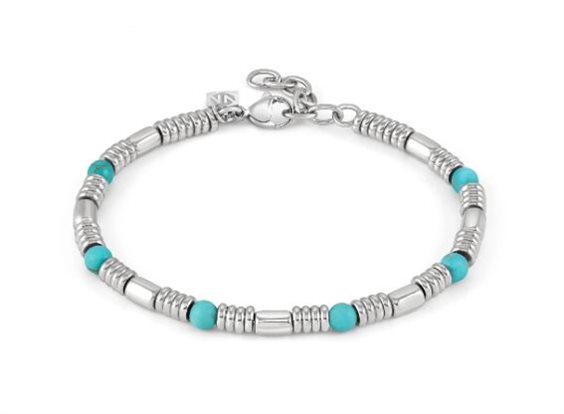 Bracciale in pietra naturale con particolari in acciaio inox e sfere di turchese. Un braccialetto unisex audace, che aggiunge stile al tuo look.