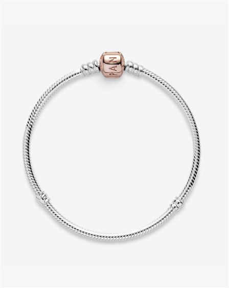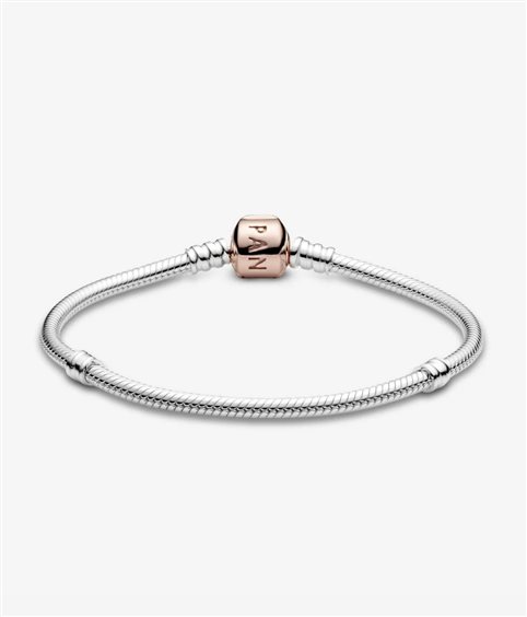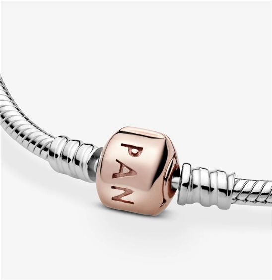 Bracciale Pandora Moments con maglia snake in argneto Sterling 925 e chiusura in lega metallica placcata oro rosa 14kt