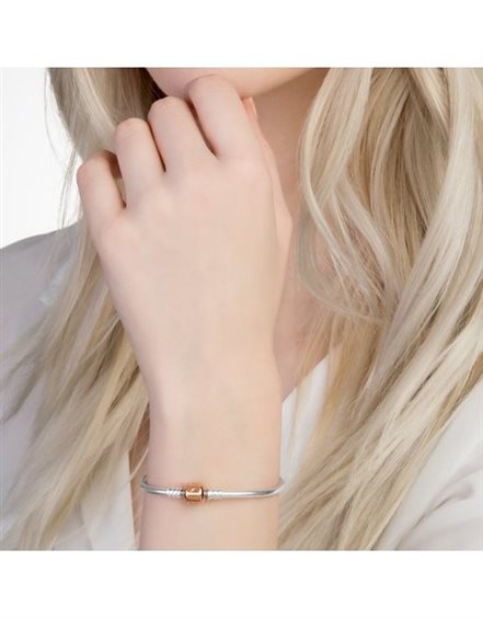 Bracciale Da Donna Di Pandora. Bracciale Moments In Argento Con Chiusura Pandora Rose Della Lunghezza Di 19 Cm. Gioiello Realizzato In Pandora Rose Con Argento.