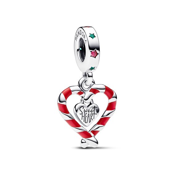 Pendente "Sweet Heart“ Argento Sterling 925; 4 cristalli verdi creati in laboratorio con incastonatura a filo, taglio brillante rotondo; 2 zirconia cubica rossa con incastonatura a filo, taglio brillante rotondo; smalto: rosso; incisione: "SWEET HEARTH“ (“Cuore dolce”) "CANDY C