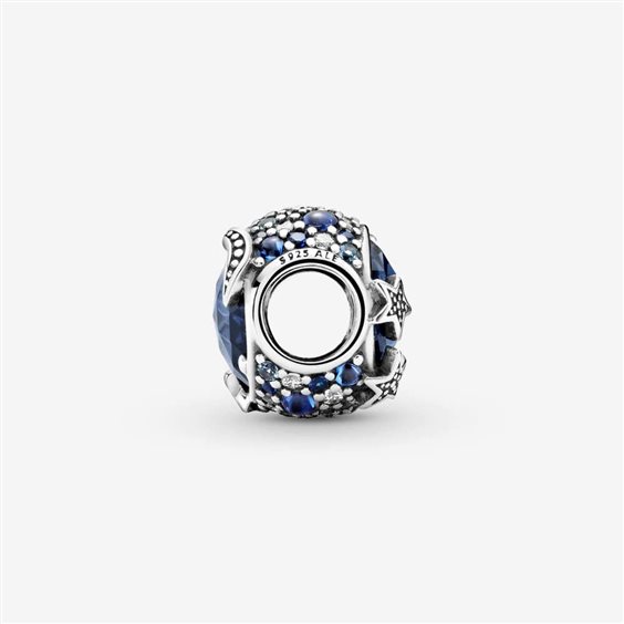 Charm Stelle scintillanti blu Lasciati conquistare dal charm Stelle scintillanti blu. Ispirato alle meraviglie delle notti stellate, il gioiello è rifinito a mano e realizzato in Argento Sterling 925. Il charm si compone di una grande pietra blu al centro, circondata da pietre blu e incolori di diverse dimensioni. Stelle decorate da sfere si sovrappongono alla pietra centrale aggiungendo tridimensionalità. Abbina il charm a gioielli ispirati alla sfera celeste e indossalo sul bracciale o sulla collana che preferisci per portare con te la bellezza della notte stellata ovunque tu vada.
