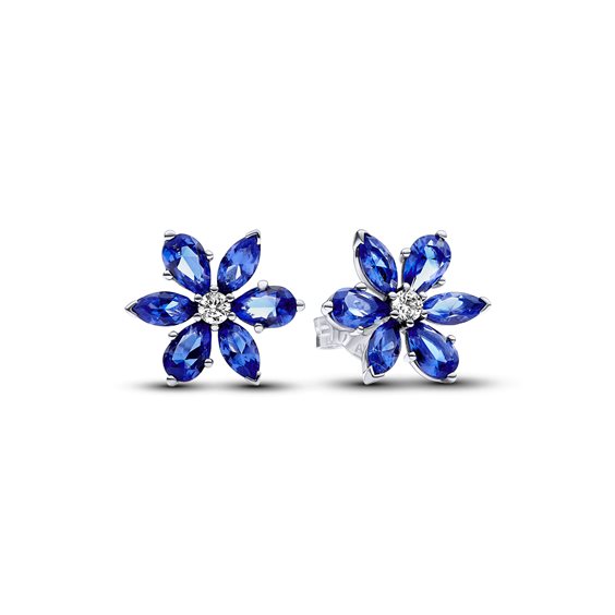 Herbarium Fiore Blu Argento Sterling 925; 2 zirconia cubica incolore con incastonatura a griffe e taglio brillante rotondo; 6 cristalli blu creati in laboratorio con incastonatura a griffe e forma a goccia sfaccettata; 6 cristalli blu creati in laboratorio con incastonatura