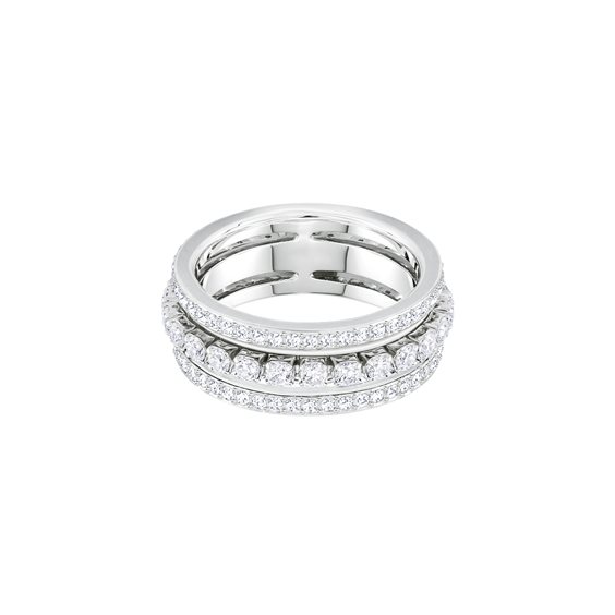 Sfoggia il massimo scintillio con questa romantica e raffinata rivisitazione del classico anello a fascia rodiato. La creazione richiama lo stile trendy degli anelli sovrapposti, presentando una raffinata linea di Clear Crystal, con incastonatura cupchain, racchiusa in due file di pavé di Clear Crystal. Un elegante gioiello che non potrà mancare nella tua collezione.