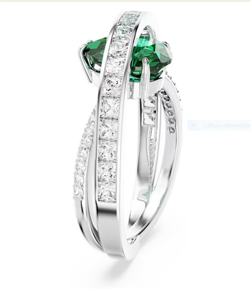 Complesso e al contempo minimalista, questo squisito anello Hyperbola è l’essenza stessa dell'eleganza audace. Placcato rodio, il gioiello presenta una doppia spirale di fasce, ciascuna decorata da scintillanti pavé di cristalli in diversi tagli. Una pietra verde dal taglio Pear, incastonata al centro del gioiello in una raffinata montatura a griffe, rivela una straordinaria attenzione ai dettagli . L’anello perfetto da indossare da solo o con orecchini abbinati. Articolo nr.: 5665362 Collezione: Hyperbola Colore: Verde Materiale: Ottone riciclato al 90%, Cristalli, Placcatura rodio, Zirconia