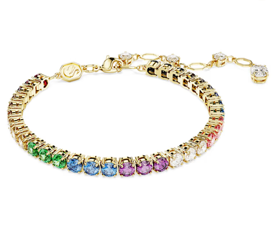 Celebra i colori del tuo cuore con il gioioso styling di questo bracciale Matrix Tennis. Il gioiello, placcato color oro, presenta una fila di vivaci cristalli nei colori dell’arcobaleno, ciascuno incastonato in una raffinata montatura a griffe, ed è dotato di una chiusura con gancio a moschettone. Pensato per permetterti di esprimere tutta la tua personalità, il bracciale può essere abbinato ad un anello coordinato. Articolo nr.: 5685691 Collezione: Matrix Lunghezza (minima - massima): 16.5 - 21.5 cm Ampiezza: 0.4 cm Materiale: Placcato color oro, Zirconia Colore: Multicolore Tipo di fermaglio: Moschettone