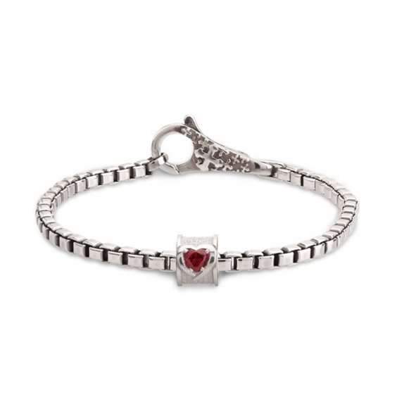 BRACCIALE INCIPIT COR in ARGENTO RODIATO e TOPAZIO ROSSO Collezione INCIPIT COR - Bracciale argento 925° e pietre preziose con cuore un elegante bracciale in argento 925, a maglia veneziana quadrata, impreziosito da un moschettone a doppia chiusura contrapposta in cui si trovano da una parte il marchio TUUM e dall’altra la texture FLORE.
