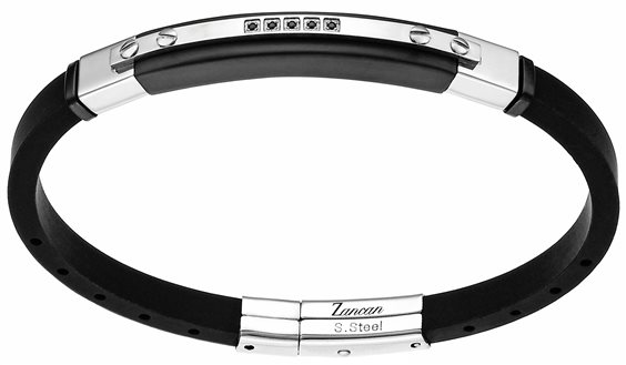 Bracciale Zancan in pelle con targa in acciaio e pietre nere - chiusura, in acciaio 316